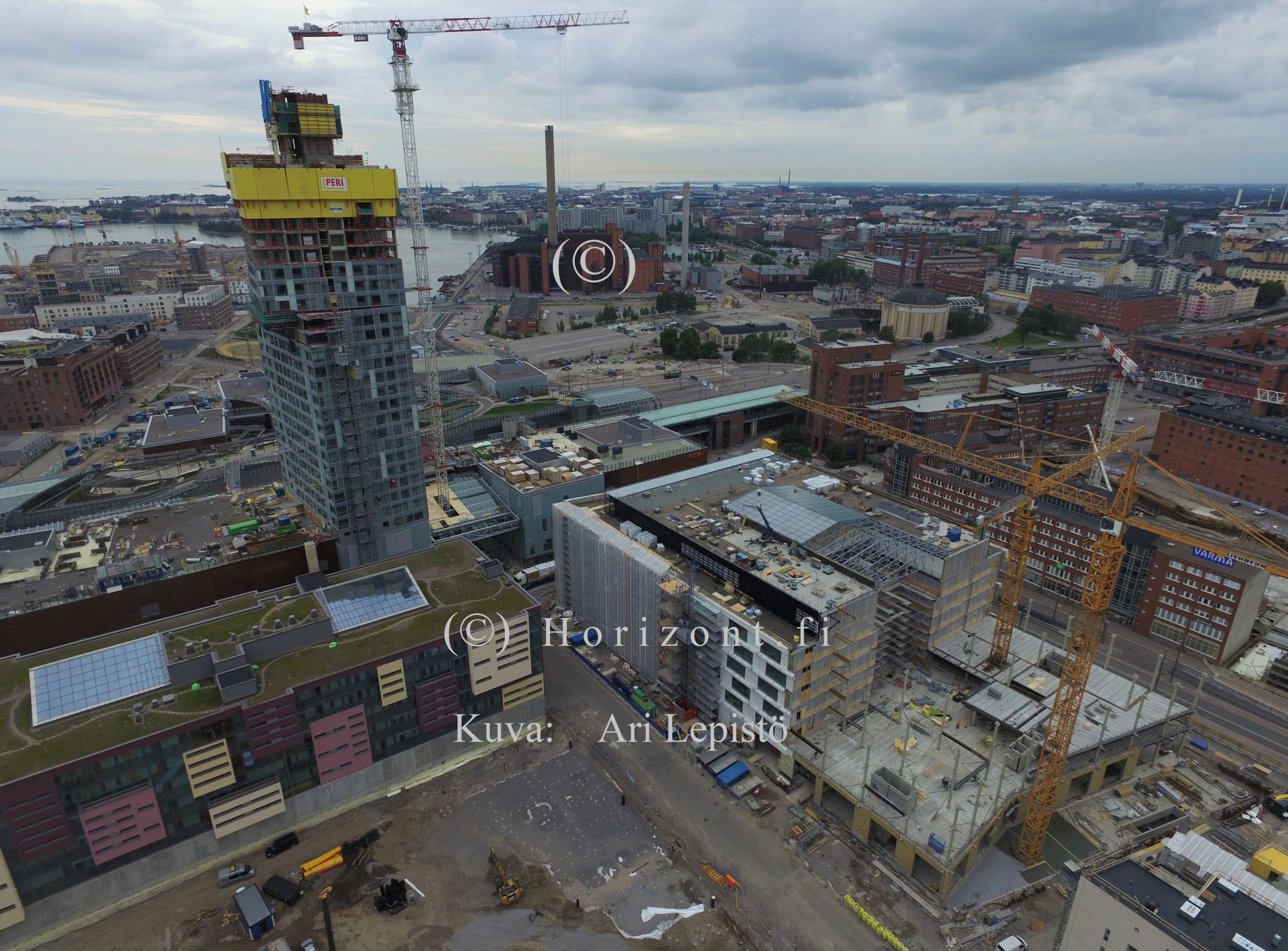 Helsingin Kalasatamaan rakennetaan uutta laajaa asunto- ja toimistoaluetta. Kuvat on otettu 14kk vä-lein, 5/2017 ja 7/2018. Kun alue on valmis 2020-luvulla niin siellä asuu 20 000 asukasta. Metroaseman ympärille nousee 20-30 kerroksisten tornitalojen keskittymä.